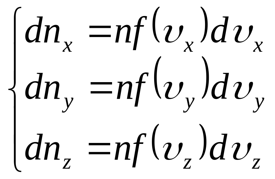 Ця формула показує, скільки молекул з усіх, що знаходяться в об’ємі, мають швидкості, координатні складові яких лежать в межах від x до x + dx, від y до y + dy, від z до z + dz, тобто поблизу визначеного вектора швидкості із заданим напрямком і величиною.