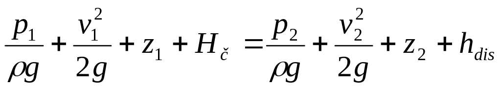 edis = edis,s + edis, v , kde členy edis, s a edis,v vyjadřují měrnou ztrátu mechanické energie v sací, výtlačné části potrubí