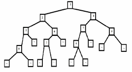 В случае, если искомого элемента нет, необходимо проделать поиск, как описано выше и, если в результате алгоритм зайдет за нижнюю часть дерева, то поиск можно считать безуспешным. Для того, чтобы зафиксировать выход за нижнюю часть дерева в нем есть специальные узлы, называемые листьями (листовые узлы). Они не содержат данных и, если алгоритм достигает такого листа, значит поиск зашёл в тупик. Для обозначения листьев используются символы тильды ~, а дерево показано на рисунке 1.2.
