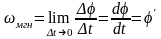 Мгновенная угловая скоростьопределяется как предел отношения бесконечно малого угла поворота к бесконечно малому промежутку времени, в течение которого это вращение произошло, илиравна первой производной углаповоротапо времени: