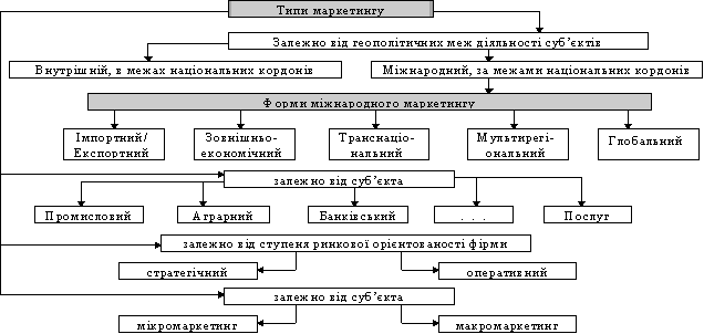 Рис. 1.1. Типи маркетингу та форми міжнародного маркетингу