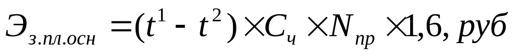где Эз.пл.осн- экономия по основной заработной плате (заработной плате за отработанное время), руб.