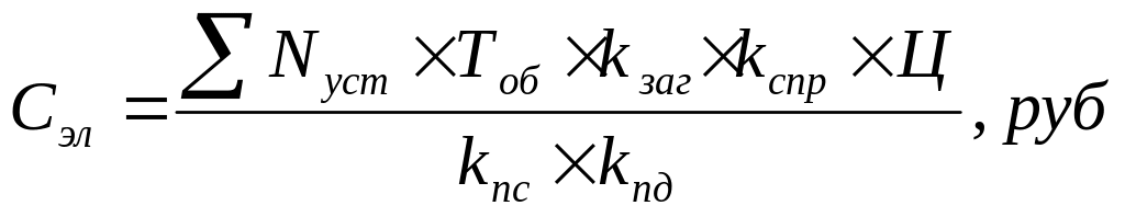 Ц – стоимость 1кВт-ч силовой энергии, руб.