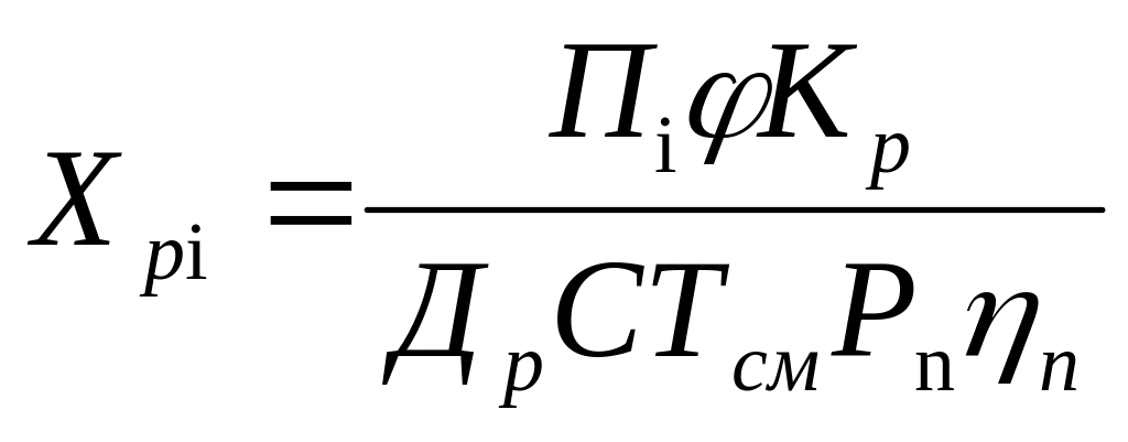где Пi – годовая трудоемкость соответственно капитального, среднего и текущего ремонта, чел.-ч.; Кр – коэффициент, учитывающий долю объема работы, выполняемой на постах ремонта (Кр = 0,5…0,6); φ - коэффициент, учитывающий неравномерность поступления пожарных автомобилей на пост ремонта (φ = 1,2…1,5); Др – число рабочих дней в году; С – число смен (С = 1); Тсм – продолжительность смены, ч (Тсм = 8 ч); Рп – число рабочих на одном посту, чел. (2…4 чел.); ηп – коэффициент использования рабочего времени поста (ηп = 0,8…0,9).