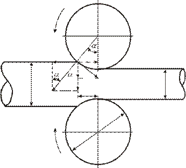 Угол захвата зависит от величины обжатия, диаметра валков, состояния их поверхности, наличия смазки, а также от способа прокатки (горячая или холодная). Максимальный угол захвата при горячей прокатке принят 15 … 22°, а при холодной – 3 … 8°.