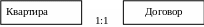 Продавец → Покупатель. «Продавец» - главный объект, а «покупатель» подчиненный объект. Тип связи «один к одному». Так как один продавец продает квартиру одному покупателю. Связь между этими объектами осуществляет атрибут «код продавца».
