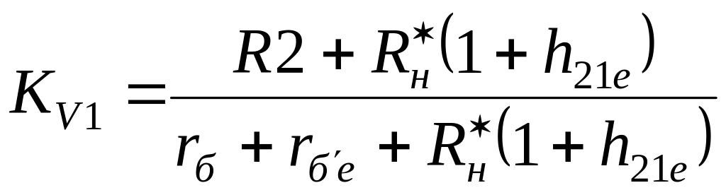 Коефіцієнт передачі емітерного повторювача на транзисторі визначається формулою: