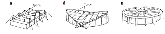 Рис. 3.52. Основные формы большепролетных пространственных покрытий: