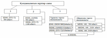 2.5 Сурет. Hdsl технологиясының түрлі нұсқалары