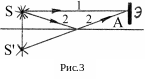 Еще один способ заключается в получении мнимого изображения S источника S c помощью специального однослойного зеркала (зеркало Ллойда). Источники S и S (рис.3) можно рассматривать как когерентные. Они создают интерференционную картину в точке A экрана Э.