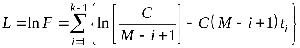 где λi=C[M – i + 1], М – число первоначально прогнозируемых ошибок в программе; С – коэффициент пропорциональности. В (12) отсчет времени начинается с момента обнаружения и исправления ошибки, то есть с момента (i – 1)-го отказа программы.