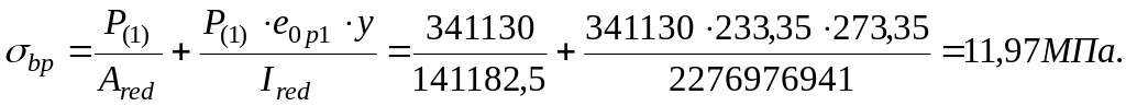 Максимальное сжимающее напряжение бетона σbp при обжатии с учетом первых потерь от силы Р(1)