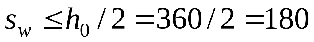 Максимально допустимый шаг хомутов, учитываемых в расчете