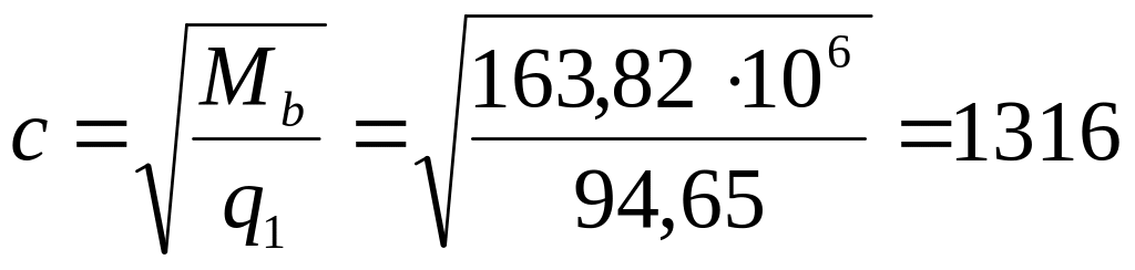 Находят длину проекции невыгоднейшего наклонного сечения с.