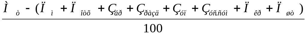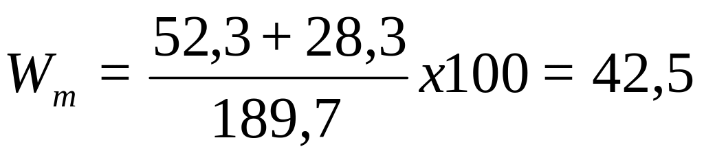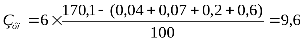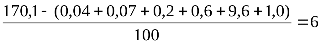 Визд = 170,1 – (0,04+0,07+0,2+0,6+9,6+7,0+0,03+0,6+0,03)=151,9%