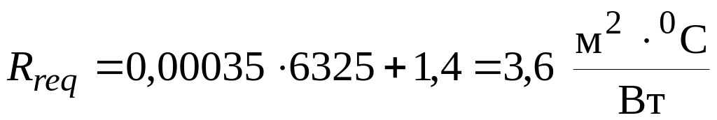 Коэффициенты для стен при ГСОП более 6000: а = 0,00035; b = 1,4;