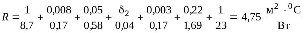 Общее термическое сопротивление определяю по формуле 3.4.: