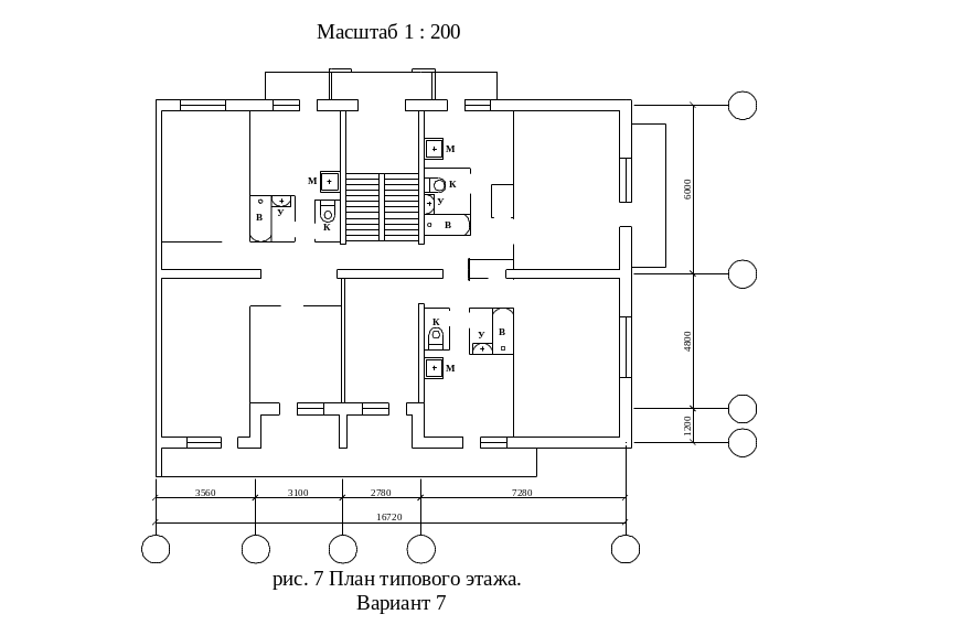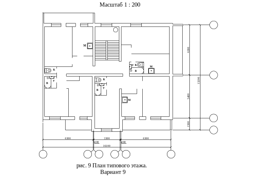 Исходные данные для курсовой работы выбираются по табл.2. Поэтажные планы зданий (М 1:200) приведены на рис.1-10, а генпланы участков застройки - на рис. 11.