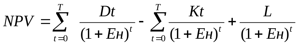 Чистый дисконтированный доход (Net Present Value) показывает величину сверхнормативного дохода, получаемого предприятием в результате осуществления инвестиционного проекта, и определяется следующим образом: