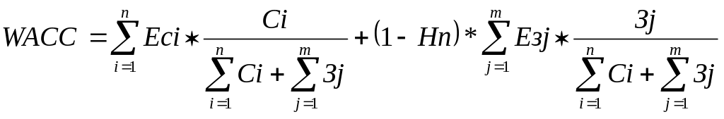 где Есi и Езj – стоимость i-го собственного и j-го заемного источника средств (без кредиторской задолженности); Сi и Зj – абсолютная величина соответствующего источника собственных и заемных средств; Нп – ставка налога на прибыль (в долях); m и n – общее число соответственно собственных и заемных источников.