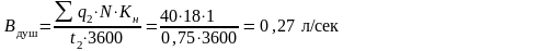 t2 – количество часов в смену (принимается 8 часов); количество часов пользования душем(принимается 0,75часа);