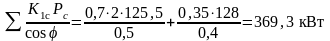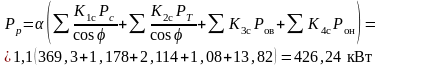 При одновременном потреблении электроэнергии всеми потребителями, расчетная мощность трансформатора кВт определяется по формуле: