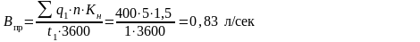 В = Впр + Вхоз + Вдуш = 0,83 + 0,028 + 0,27 = 1,13 л/сек;
