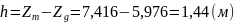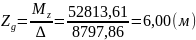 Подсчитываем возвышение центра тяжести судна над основной плоскостью: