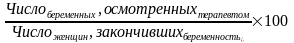 а) процент беременных, осмотренных терапевтом - из числа состоящих на учете на начало года и поступивших, под наблюдение в отчетном году