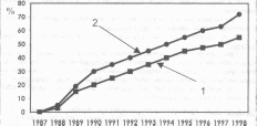 В табл. 25 приведены результаты опроса в Швеции 14 тыс владельцев 96 моделей легковых автомобилей относительно их желания повторного приобретения автомобиля данной модели. Получены данные показывают, что, во-первых, желание повторно приобрести такую же модель автомобиля уменьшаются по мере продолжения её эксплуатации, т.е. происходит инфляция доверия, во-вторых, это желание существенно варьируется по различным моделям.