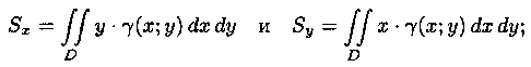 Как уже показано (п. 7.2), масса плоской пластинки D с переменной плотностью γ=γ(х;у) находится по формуле