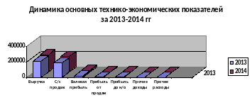 Рисунок 1.4 –Динамика основных технико-экономических показателей ООО «Метаком» за 2013-2014 гг.