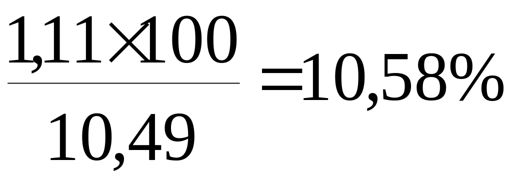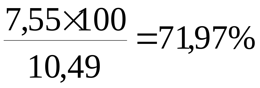 VПГ = VCO2 + VH2O + VN2 + VО2и = 1,11 + 1,48 + 7,55 + 0,35 = 10,49 м3