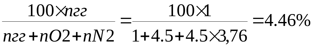 nО2 – к-во Кмолей кислорода для окисления 1 кмоля Г.В. (из уравнения реакции горения).