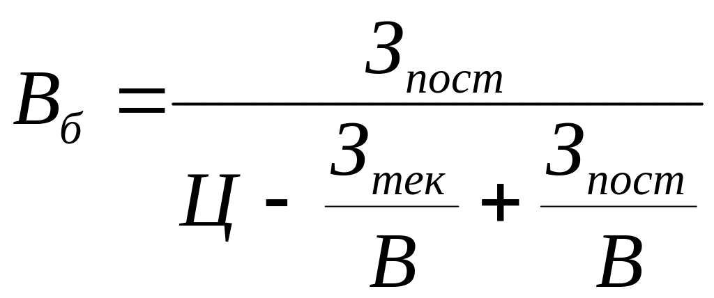 Точка безубыточности Tб (Bб): Ц = с/с.