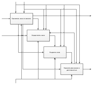 Модель организационной структуры ресторана была получена из модели состава, путем установления межэлементных связей. Направленными линиями отображается подчиненность подразделений. Данная модель изображена на рис. 1.3: