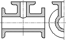 3. На видах и разрезах допускается упрощенно изображать проекции линий пересечения поверхностей, если не требуется точного их построения. Например, вместо лекальных кривых проводят дуги окружности и прямые линии (рис. 32, 33). |