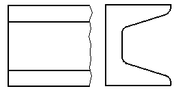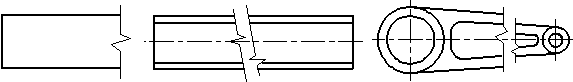 9. Предметы или элементы, имеющие постоянные или закономерно изменяющееся поперечное сечение (валы, цепи, прутки, фасонный прокат, шатуны и т. п.), допускается изображать с разрывами. Частичные изображения и изображения с разрывами ограничивают одним из следующих способов: 9.1. Сплошной тонкой линией с изломом, которая может выходить за контур изображения на длину от 2 до 4мм. Эта линия может быть наклонной относительно линии контура (рис. 45);