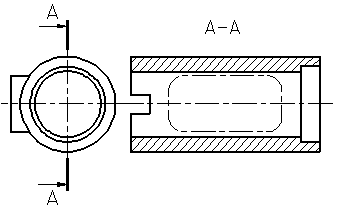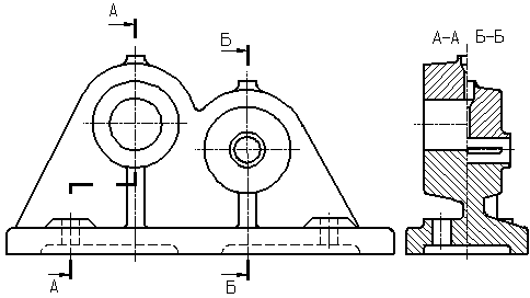 1. Если вид, разрез или сечение представляют симметричную фигуру, допускается вычерчивать половину изображения ограниченную осевой линией или немного более половины изображения с проведением в последнем случае линии обрыва (рис. 14) .