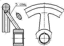 5. Такие детали, как винты, заклепки, шпонки, непустотелые валы и шпиндели, шатуны, рукоятки и т. п. при продольном разрезе показывают нерассеченными. Шарики всегда показывают нерассеченными. Как правило, показываются нерассеченными на сборочных чертежах гайки и шайбы. Такие элементы, как спицы маховиков, шкивов, зубчатых колес, тонкие стенки типа ребер жесткости и т. п. показывают незаштрихованными, если секущая плоскость направлена вдоль оси или длинной стороны такого элемента. Если в подобных элементах детали имеется местное сверление, углубление и т. п., то делают местный разрез, как показано на рис. 11, 12.