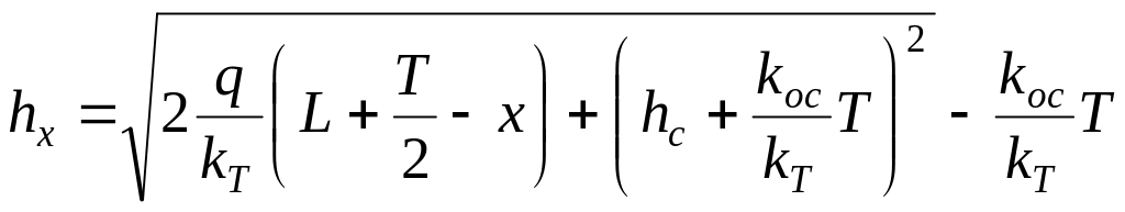 В пределах участка lc для определения текущей координаты кривой депрессии используют формулу