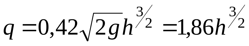 где 0,42 – коэффициент расхода; g – ускорение силы тяжести (g = 9,81 м/с2); h – напор на водосливе, равный высоте отбираемого слоя воды, м. Из опыта эксплуатации величина h не должна превышать 0,3 м; в расчетах следует принимать h = 0,15–0,2 м. В табл. 2.1 приведены значения q, вычисляемые по формуле (2.7).