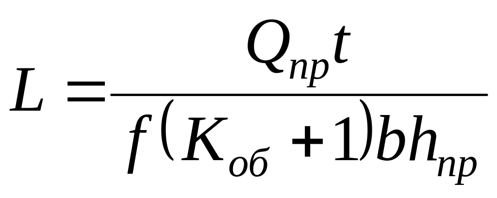 Длина водосливной кромки водоприемника (м) должна обеспечивать пропуск расчетного расхода Q: