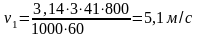 5) Определяем окружные скорости v , м/с зубчатых колес по формуле: