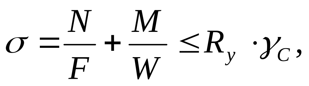 где N, M - сжимающее усилие и изгибающий момент, определенные для опасного сечения балки;