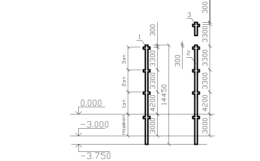 подвала с высотой этажей 3300 мм и высотой верхнего этажа 2.800