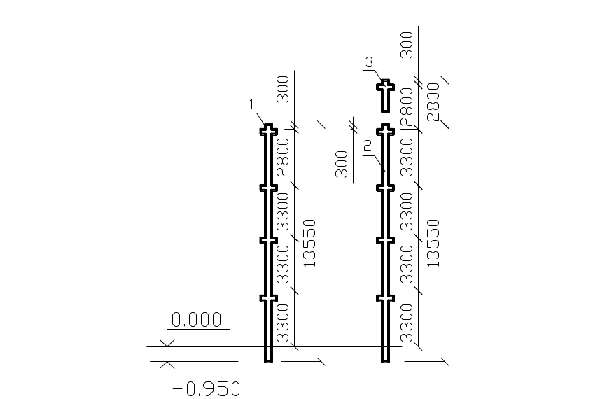 Рисунок 15 – Колонны каркаса сечением 300х300 мм для зданий с техническим подпольем высотой 2 м и высотой этажей 3300 мм