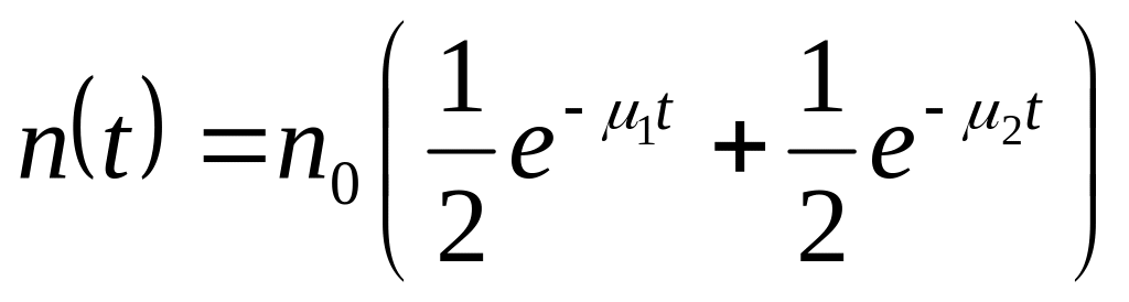 Зависимость скорости счета п(t) для двух групп -квантов одинаковой интенсивности запишем в виде