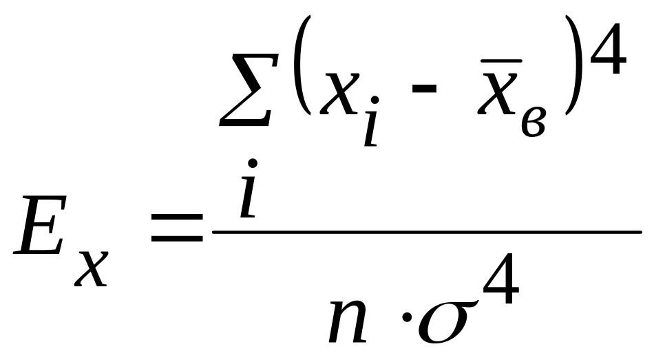 Неприведенный коэффициент эксцесса Ех также является характеристикой формы распределения, а именно его островершинности, и определяется из выражения:
