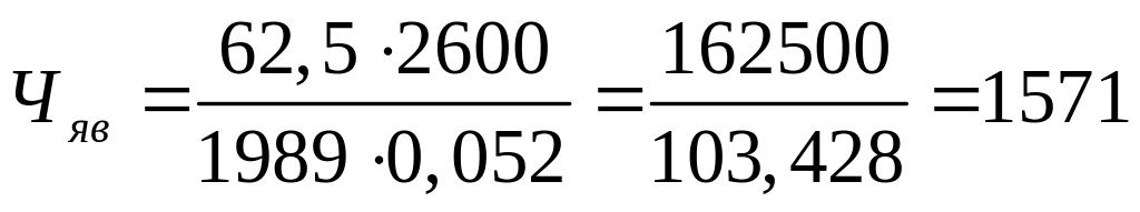 Явочная численность данного контингента рассчитывается по формуле (3.1.3), при этом учитываются следующие данные: